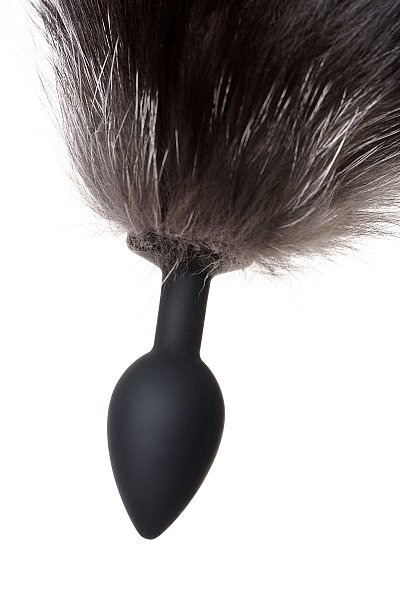 Черная силиконовая анальная втулка с хвостом чернобурой лисы - размер S