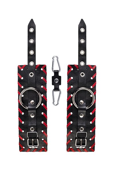 Готовы играть по-взрослому? Не бойтесь своих желаний! Основатели бренда уверены: лучший способ избавиться от искушения - поддаться ему! Добавьте пикантную деталь в ролевую игру и воплотите самую смелую сексуальную фантазию в реальность! Двухслойные кожаные наручники с окантовкой красного цвета, могут стать стильным аксессуаром на «свободных» руках, но могут послужить вашим целям и фантазиям по своему прямому назначению. Наличие двух карабинов и колец позволяет использовать изделие как раздельно – аксессуар-манжеты, так и как наручники для фиксации. К широким металлическим кольцам также можно присоединить и другие аксессуары при помощи карабинов. Благодаря универсальному размеру наручники могут использоваться и мужчинами, и женщинами. Размер легко регулируется с помощью металлических пряжек, органично вписывающихся в общий стиль. Длина манжет - 20 см, ширина манжет - 6,5 см. Длина сцепки - 13 см.