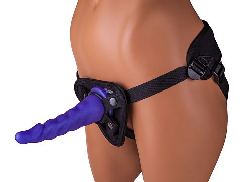 Оригинальный комплект из трусиков-унисекс со штырьком для страпона и двух соблазнительных насадок: телесного цвета с крупной головкой и фиолетового с чувственным рельефом. Размер трусиков регулируется аккуратными ремешками на бедрах.