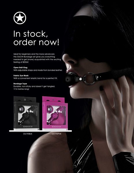 Набор для бондажа Bondage Set. Начните ваш путь в мире БДСМ с этим замечательным набором для бондажа, который идеально подходит как для новичков так и для более опытных любителей бондажа. Он состоит из кляпа-шарика, маски на глаза и скотча. В этом наборе есть все, что нужно для двоих. Ремешки кляпа регулируются по длине. Маска имеет удобную резинку для идеальной подгонки. Лента мягкая и прочная, не прилипает к коже и не путается. Длина скотча - 17,5 м.