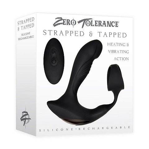 Черный вибромассажер простаты с эрекционным кольцом Strapped Tapped