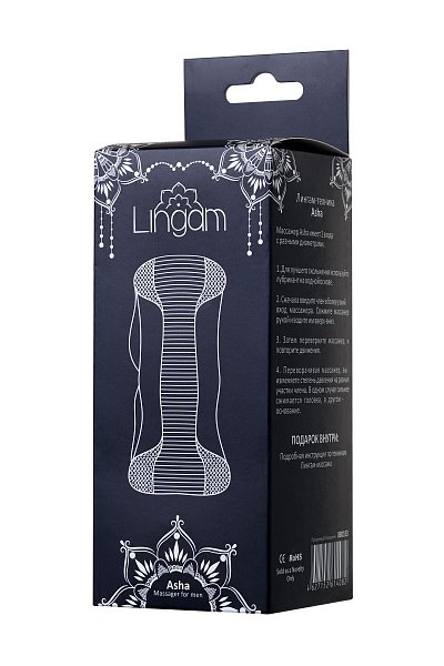 Лингам-техника, которую вы можете выполнять с массажером Asha: 1. Для лучшего скольжения используйте лубрикант на водной основе. 2. Сначала введите член в более узкой вход массажера. Сожмите массажер рукой и водите им вверх-вниз. 3. Затем переверните массажер, и повторите движения. 4. Переворачивая массажер, вы изменяете степень давления на разные участки члена. В одном случае сильнее сжимается головка, в другом - основание.