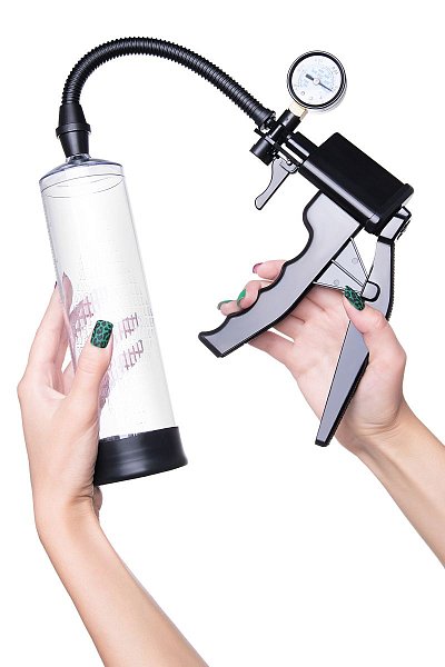 С помпой Viggo серии Sexus Men Training легко управлять своими тренировками по пенбилдингу, усиливать эрекцию и получать новые ощущения от полового акта. Для тренировки, а также чтобы подготовить себя к длительному и яркому сексу, вставьте свой пенис в колбу и откачайте воздух с помощью рычага с пистолетной рукояткой. Благодаря отрицательному давлению увеличивается приток крови к половому члену, за уровнем давления удобно следить с помощью встроенного манометра.