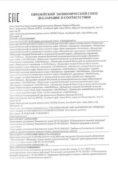 Биогенный комплекс растительных экстрактов Erotichar® sex women в капсулах способствует повышению либидо, увеличению сексуальной активности, обострению чувственных ощущений во время близости, улучшению состояния при хронической усталости, депрессии, нервном истощении и перенапряжении, уменьшению симптомов ПМС и менопаузы. Противопоказания: не рекомендуется лицам, страдающим индивидуальной непереносимостью компонентов, повышенной нервной возбудимостью, бессонницей, артериальной гипертензией не рекомендуется превышать рекомендуемую суточную норму продукта (2 капсулы) противопоказан одновременный прием с алкоголем, т.к. снижает эффективность действующих веществ. Прием капсул возможен за 30-40 минут до употребления алкоголя. При заболеваниях сердечно-сосудистой системы совместный прием с алкоголем исключен.
