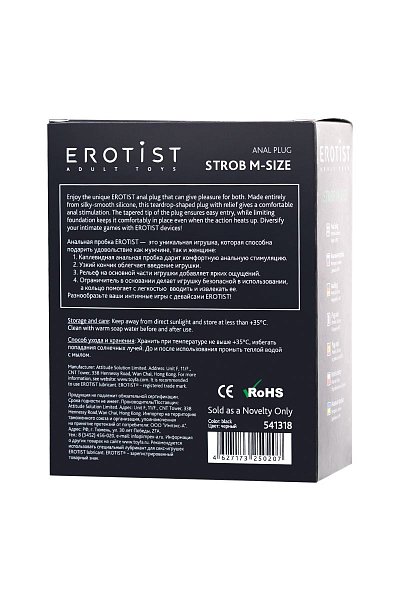Анальная пробка EROTIST — это уникальная игрушка, которая способна подарить удовольствие как мужчине, так и женщине Каплевидная анальная пробка дарит комфортную анальную стимуляцию. Узкий кончик облегчает введение игрушки. Рельеф на основной части игрушки добавляет ярких ощущений. Ограничитель в основании делает игрушку безопасной в использовании, а кольцо помогает с легкостью вводить и извлекать ее. Разнообразьте ваши интимные игры с девайсами EROTIST! Рабочая длина - 8 см.