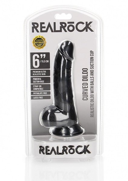 Черный фаллоимитатор Curved Realistic Dildo Balls Suction Cup 6 - 15,5 см.