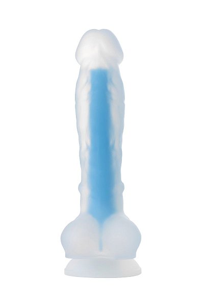 Прозрачно-синий фаллоимитатор, светящийся в темноте, Matt Glow - 18 см.