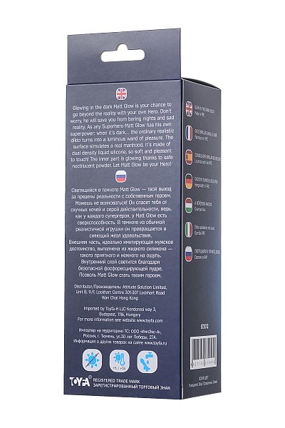 Светящийся в темноте Matt Glow — твой выход за пределы реальности с собственным героем. Можешь не волноваться! Он спасет тебя от скучных ночей и серой действительности, ведь, как у каждого супергероя, у Matt Glow есть сверхспособность. В темноте из обычной реалистичной игрушки он превращается в сияющий жезл удовольствия. Внешняя часть, идеально имитирующая мужское достоинство, выполнена из жидкого силикона — такого приятного и нежного на ощупь. Внутренний слой светится благодаря безопасной фосфоресцирующей пудре. Позволь Matt Glow стать твоим героем. Рабочая длина - 13 см.