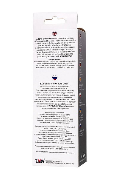 Фаллоимитатор A-Toys Cryst – интересная игрушка, открывающая дополнительные возможности. Эластичный материал девайса позволяет ему слегка гнутся, так что вы без труда найдете идеальный угол для стимуляции. Игрушка имеет ярко выраженную головку, что усиливает приятные ощущения дополнительным массажем стенок влагалища. Присоска в основании игрушки позволяет закрепить ее на любой плоской поверхности. С A-Toys Cryst незабываемое удовольствие вам гарантировано! Рабочая длина - 10,7 см.