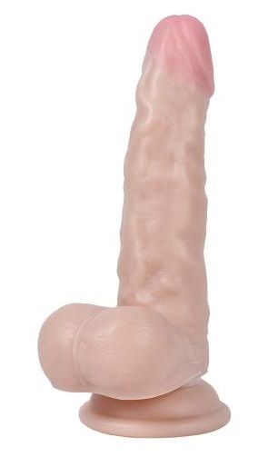 Фаллоимитатор из плотного безопасного высококачественного материала делает ощущения максимально реалистичными. Плотный стержень покрыт слоем мягкого и нежного, приятного на ощупь материала. Имитация имеет мягкую округлую головку, гибкое покрытое венками тело и упругую мошонку. Присоска в основании позволяет надежно закрепить игрушку на любой гладкой поверхности.