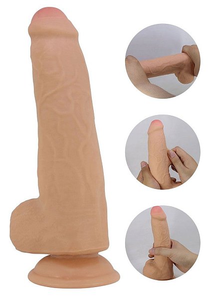 Телесный фаллоимитатор с подвижной кожей Draco - 23,3 см.