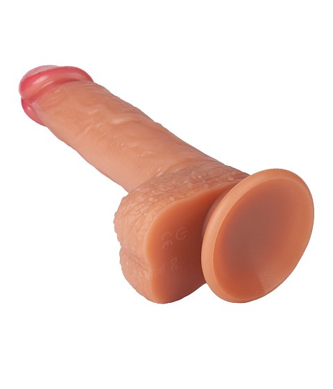 Телесный реалистичный фаллоимитатор из двухслойного силикона. Тактильно похож на живую плоть. Пышная мягкая мошонка для внешней стимуляции и реалистичности ощущений. Богаты рельеф поверхности. В основании присоска для фиксации на гладкой твёрдой плоскости. Рабочая длина - 16 см.