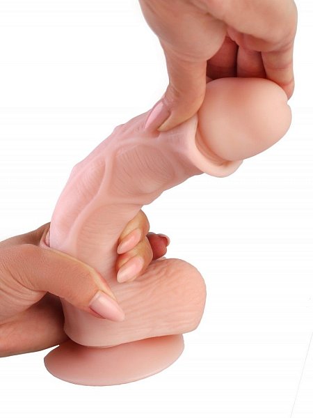 Реалистичный фаллос с хребтом из киберкожи, мошонкой и подвижной крайней плотью с нежной и приятной на ощупь материалом создан для плотской любви и неземного наслаждения. Благодаря присоске, его можно зафиксировать на любой ровной и плоской поверхности. Отличительной особенностью этого фаллоимитатора является гибкий хребет, который позволяет принимать различные формы, рельефный рисунок на всей поверхности и максимальная реалистичность кожи. Присоска фаллоимитатора позволит освободить руки, а ярко выраженная мошонка будет дополнительно стимулировать эрогенные зоны вокруг половых органов. Рабочая длина - 18 см.