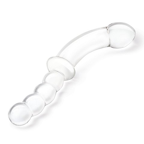 Отзывы о Стеклянный двусторонний фаллоимитатор 12,5’’ Girthy Double Sided Dong With Anal Bead Grip Handle - 32 см.