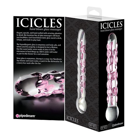 Фаллоимитатор стеклянный Icicles № 7, цвет прозрачный с розовым. Взгляните на стимуляторы с новой стороны: гладкая поверхность, внимание к деталям, элегантность и совершенно новые ощущения. Достаточно немного нагреть палочку – и она готова дарить невероятное наслаждение! При правильно уходе игрушка может служить десятилетиями. Капелька специального средства и теплая вода, или несколько минут в посудомоечной машине – и стимулятор снова готов к использованию!