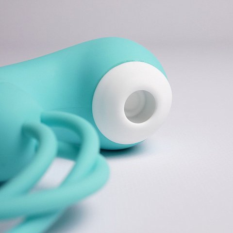 Бирюзовый вакуумный стимулятор клитора с вагинальными виброшариками