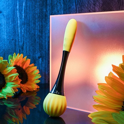 Черно-желтый двусторонний вибратор Sunflower - 20 см.