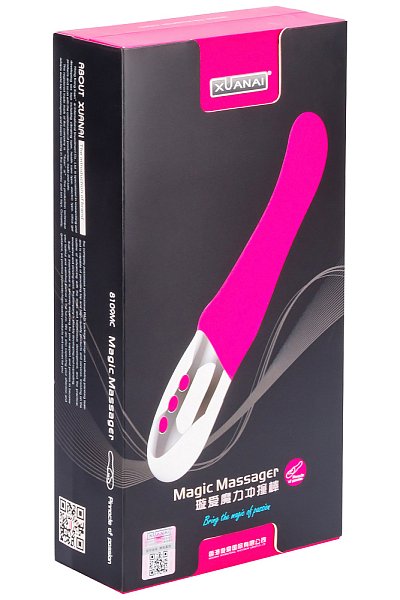 Имеет 5 режимов пульсации. При весе в 580 грамм легко помещается в дамской ручке, имеет удобные кнопки включения и регулировки режимов. Массажер перезаряжаемый, что позволяет не задумываться о батарейках, а легко и удобно заряжать устройство через USB-разъем. Рабочая длина - 15 см. В комплекте: зарядный USB-шнур, чехол для хранения и инструкция на англ.яз.