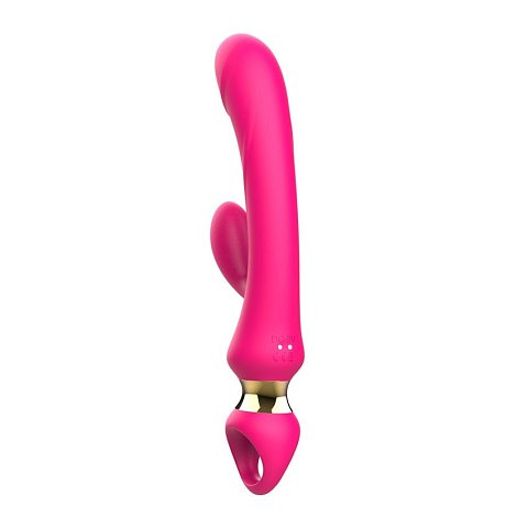 Розовый вибратор-кролик с ручкой-кольцом - 24,6 см.