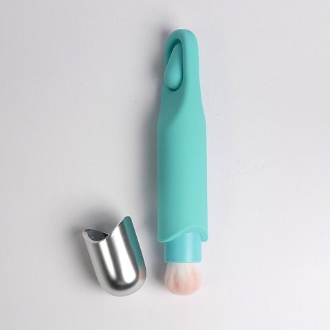 Бирюзовая многофункциональная вибропуля с щеточкой
