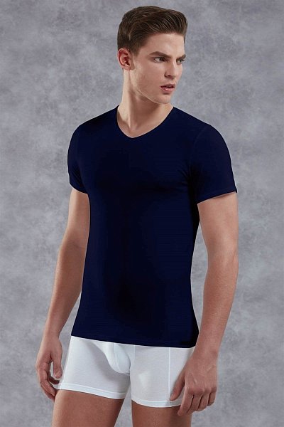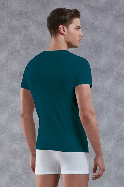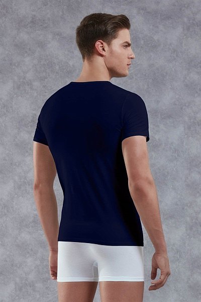 Классическая мужская футболка из натуральных материалов (хлопок + модал) с добавлением лайкры прекрасно подойдёт как для повседневного ношения, так и для занятий спортом. Кромка горловины отделана стильным тонким бортиком с небольшим V-образным защипом.
