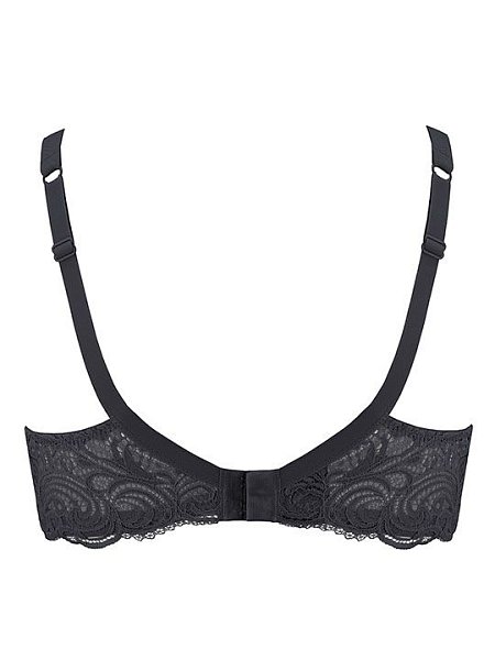 Бюстгальтер с мягкой чашкой на косточках. Несъемные бретели спереди обтянуты нежной тканью ULTRASOFT. Маечная конструкция спинки, продублирована микросеткой. Застежка в два ряда на четыре позиции. Выполнен из эксклюзивного кружева с эффектом тату. Коллекция Frizzante.
