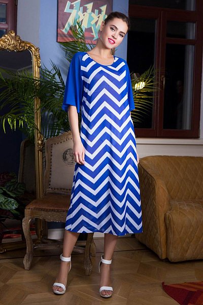 Пляжное платье выполнено из принтованной эластичной сетки. Модель расклешенного силуэта длиной миди. Свободный широкий рукав длиной до локтя прикрывает руки от палящего солнца.