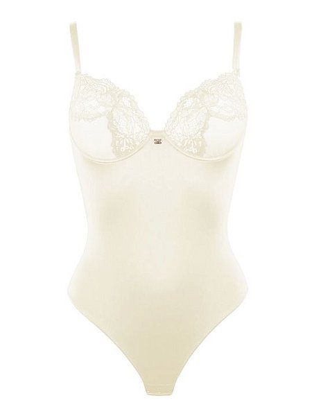 Боди с формованной чашкой без пуш-ап, на косточках, с глубоким вырезом, задняя деталь в форме бразилиана. Легкая прокладка SUPERSOFT обеспечивает максимальный комфорт. Несъемные бретели, обтянутые мягкой тканью. Застежка на ластовице в три ряда на одну позицию. Выполнен с использованием элегантного кружева, декорирован подвеской из розового золота. Коллекция Saten.