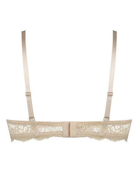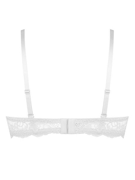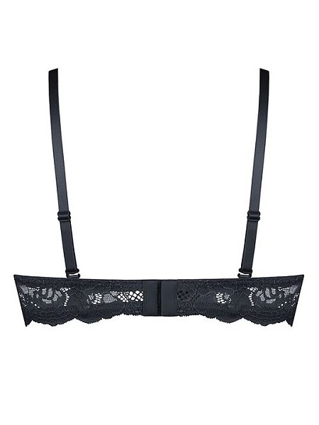 Бюстгальтер типа Анжелика с формованными чашками без пуш-ап, на косточках. Стан усилен спереди вторым слоем микрофибры, бочок усилен вертикальными, гибкими пластинами. Силикон на резинках спинки для лучшей фиксации на стане для носки без бретелей. Застежка в 2 ряда на 4 позиции. Выполнен из мягкой микрофибры и эластичного кружева.