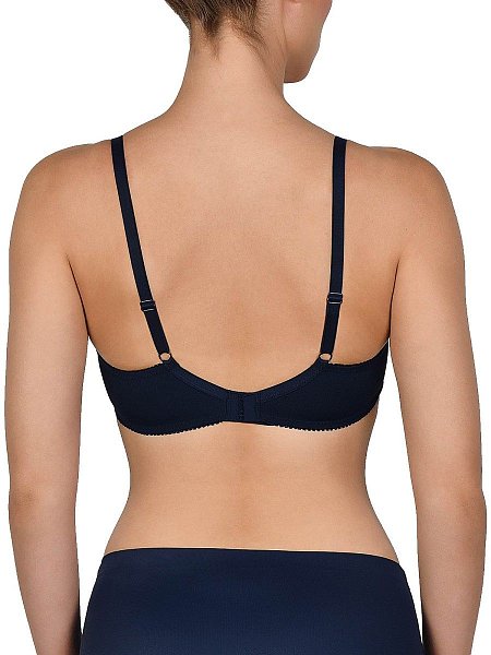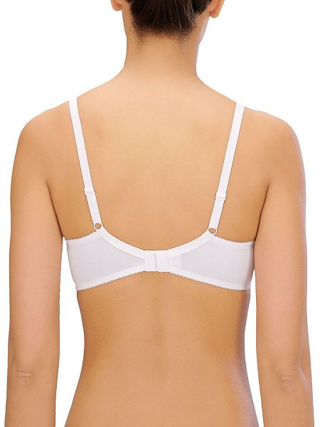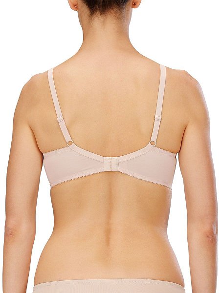 Бескаркасный бюстгальтер с бесшовными формованными чашками на тонком поролоне. Эластичные бретели регулируются сзади. Три ряда крючков для оптимальной подгонки бюстгальтера по объему.