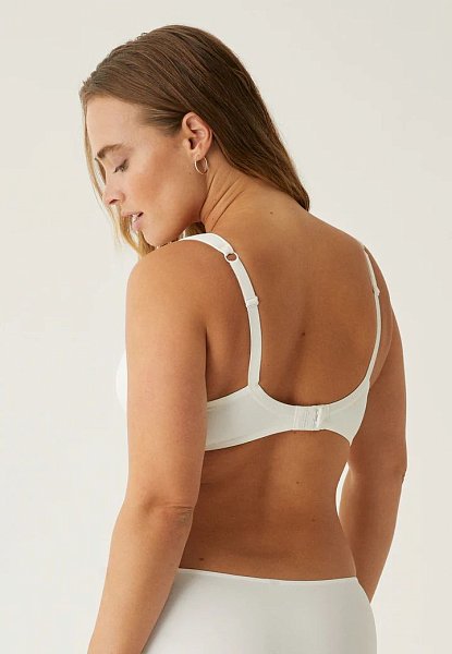Бескаркасный бюстгальтер с гладкими чашками на тонком поролоне. Линия декольте отделана широкой атласной лентой. Широкие мягкие неэластичные спереди бретели становятся эластичными на спинке и регулируются. Благодаря приятному материалу и отсутствию косточек, он обеспечивает максимальный комфорт и станет вашим идеальным спутником на каждый день.