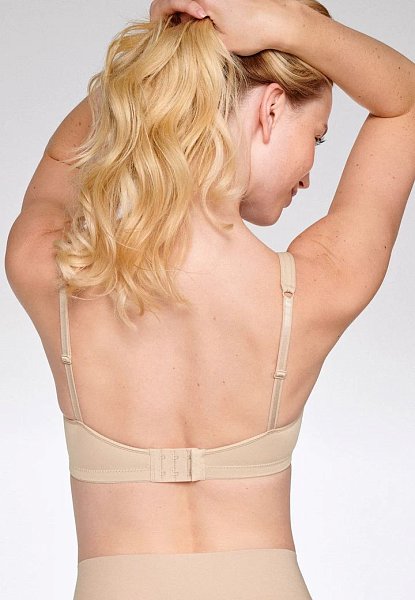 Бюстгальтер с двойной бесшовной чашкой из экстраэластичного материала. Садится точно по фигуре и естественно моделирует бюст любой формы. Благодаря высокой эластичности садится на чашки полнотой B-D. Представляет собой отличное решение для будущих мам.