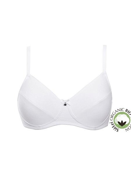Бюстгальтер с мягкой французской чашкой, без косточек. Чашка выполнена из двух слоев ткани. Застежка в 2 ряда на 4 позиции. Регулируемые бретели. Изделие выполнено из органического хлопка, собранного вручную, без вредных веществ. Гипоаллергенно.