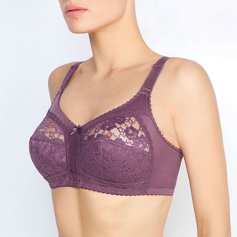 Классический бескаркасный бюстгальтер с мягкой кружевной чашкой, для большой полнотной группы. Кружево на нижней части чашек и поясе ламинированы хлопком, что придает стабильность и комфорт при носке, важные для женщин, обладающих пышной грудью. Внутренние швы обработаны мягкой отделочной тесьмой, что позволяет швам не натирать чувствительную кожу. Бретель классическая, непосредственно предназначена для большой размерной группы, с фронтальной регулировкой, для большего удобства.