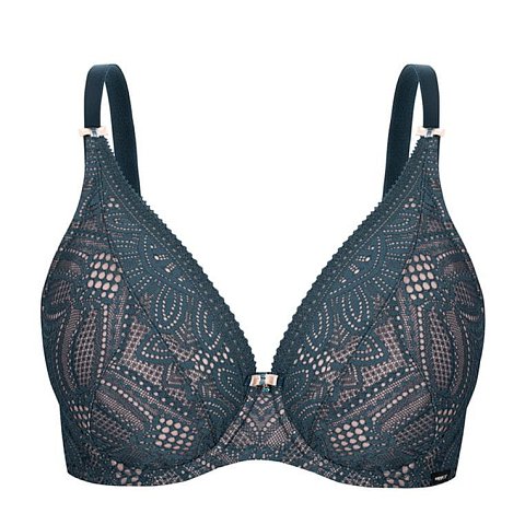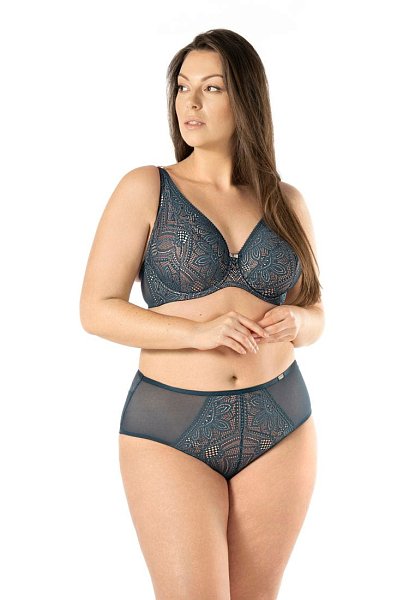 Бюстгальтер Daniela M бралетт выполнен на косточках, чашки мягкие, шитые из кружева, продублированы телесной сеткой. Пояс из сетки продублирован телесной сеткой. Бретельки пришиты, регулируются по длине. На спине застёжка на удлинитель, фурнитура металлическая цвета меди.