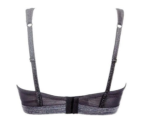 Бюстгальтер-бралетт Erba с мягкими чашечками на косточках, чашки шитые из деликатной сетки. Бретельки с люрексом регулируются по длине, не отстёгиваются. На спине застёжка на удлинитель, количество крючков в ряду застёжки увеличивается пропорционально размеру бюстгальтера. Пояс бюстгальтера по нижнему краю украшен широкой эластичной резинкой с люрексом.