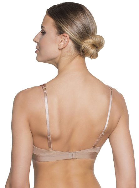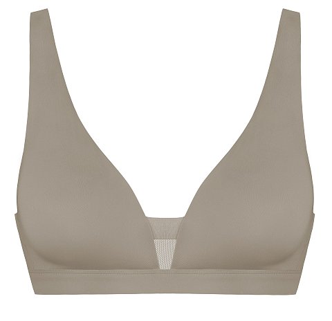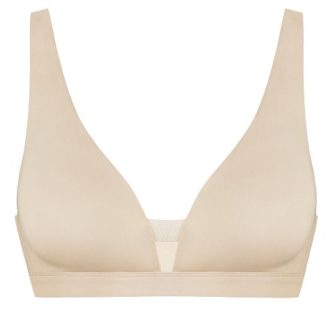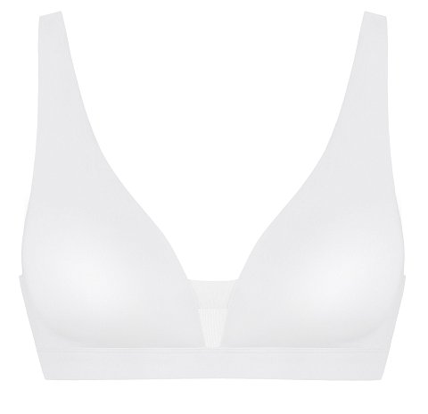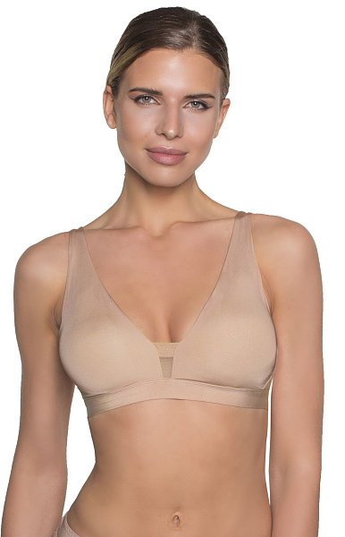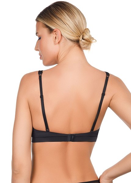 Бралетт с двухслойными мягкими чашками без костей. Съемные формованные вкладыши. Несъемные, регулируемые бретели. Застежка в два ряда на три позиции. Выполнен из микрофибры.
