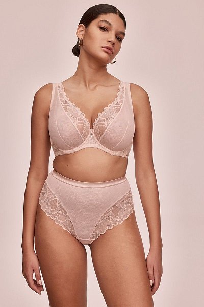 Бюстгальтер-бралетт Glow с мягкими чашечками на косточках, чашки шитые из сетки в крапинку, продублированы сеткой в тон, и кружева с легким эффектом мерцания, с дополнительными боковыми поддержками. Широкие бретели с подкладкой из мягкого пеноматериала регулируются по длине, не отстёгиваются, фурнитура металлическая цвета меди. Спинка из сетки продублирована сеткой в тон. На спине застёжка на удлинитель, количество крючков в ряду застёжки увеличивается пропорционально размеру бюстгальтера.