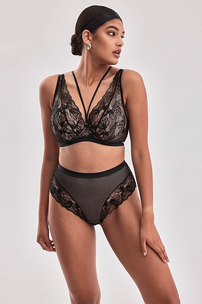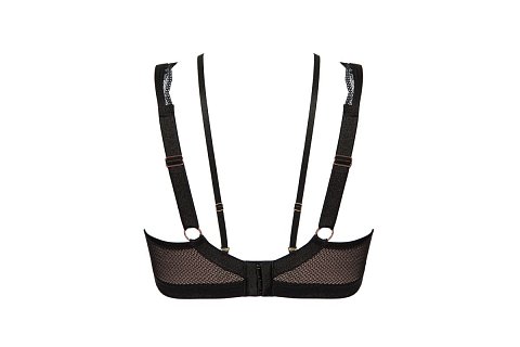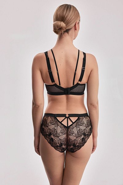 Бюстгальтер-бралетт Volare M с мягкими чашечками на косточках, с дополнительными боковыми поддержками, чашки шитые, богато декорированы нежным цветочным кружевом, продублированы телесной сеткой, пояс из эластичного сетчатого кружевного полотна на контрастной подкладке из стабилизирующей сеточки. Бретельки регулируются по длине, не отстёгиваются. В зоне декольте дополнительные съемные тонкие бретели, регулируются по длине, крепятся между чашками и на спинке. Фурнитура металлическая цвета меди.