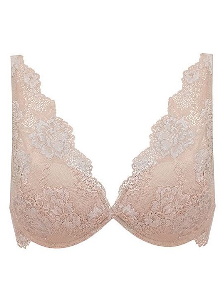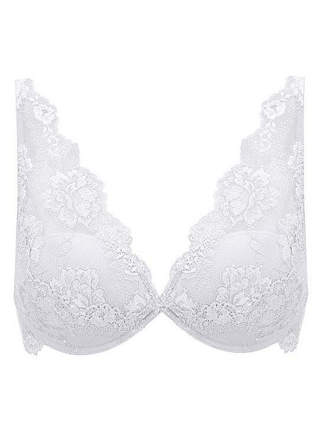 Бюстгальтер бралетт с формованными чашками на косточках, гелевый пуш-ап. Визуально добавляет +2 размера. Глубокая линия декольте. Регулируемые бретели. Застежка в два ряда на три позиции. Выполнен из эластичного, плоского кружева. Коллекция My Class.