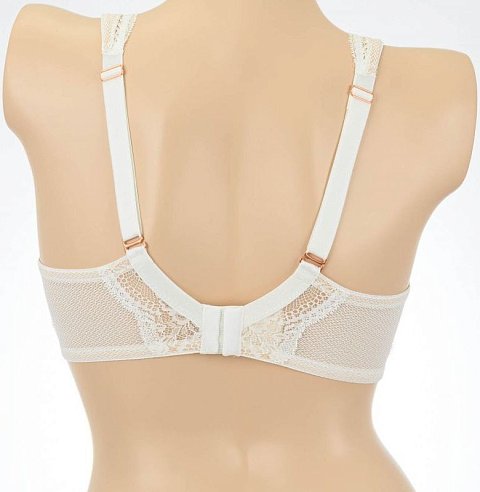 Бюстгальтер Fiore M с мягкими чашечками на косточках, чашки шитые, покрыты кружевом, продублированы телесной сеткой. Бретельки регулируются по длине, не отстёгиваются. На спине застёжка на удлинитель, количество крючков в ряду застёжки увеличивается пропорционально размеру бюстгальтера. Фурнитура цвета меди.