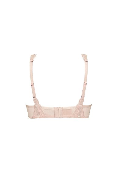Бюстгальтер Chita M с мягкими чашечками на косточках, чашки шитые, покрыты кружевом, продублированы телесной тканью, с дополнительными боковыми поддержками. Бретельки регулируются по длине, отстёгиваются на спинке. На спине застёжка на удлинитель, количество крючков в ряду застёжки увеличивается пропорционально размеру бюстгальтера.
