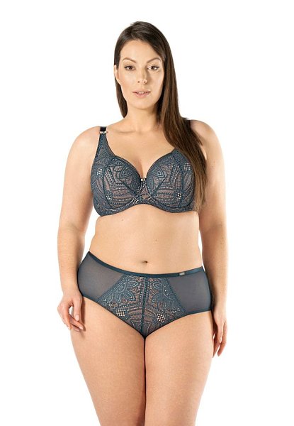 Бюстгальтер Daniela U выполнен на косточках, с дополнительными боковыми поддержками, чашки шитые, на тонком поролоне телесного цвета, со съёмными пуш-ап вкладышами, внутренняя сторона проложена хлопковым трикотажем, внешняя сторона чашек из кружева, спинка из сетки продублирована телесной сеткой. Бретельки не отстёгиваются, регулируются по длине. На спине застёжка на удлинитель, количество крючков в ряду застёжки, увеличивается пропорционально размеру бюстгальтера, фурнитура металлическая цвета меди.