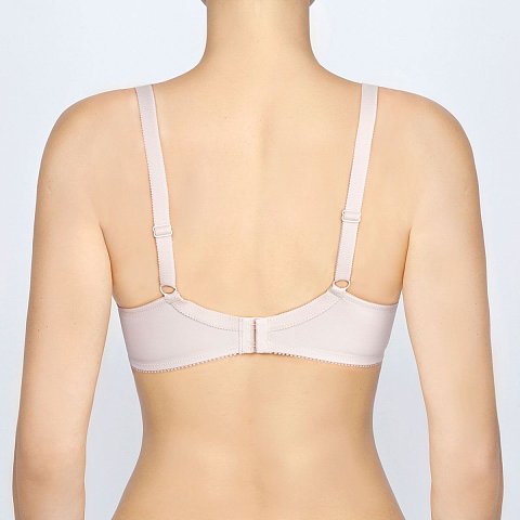 Бюстгальтер пуш-ап с гладкой формованной чашкой со встроенным корректором, на каркасах. Форма чашки, со смещенным центром, позволяет собрать грудь, чтобы визуально она не выглядела разведенной в стороны. Бретели гладкие, классические, регулируются на спине.