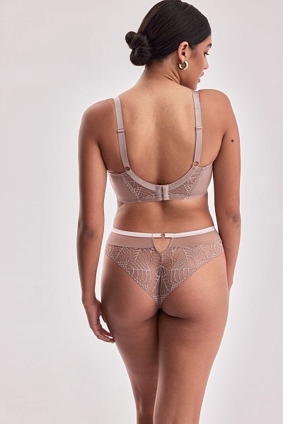 Бюстгальтер Denver выполнен на косточках (на каркасах), с дополнительными боковыми поддержками, чашки шитые мягкие, внешняя сторона кружевная, продублированы телесной сеткой, с боковым подкроем. Бретельки не отстёгиваются, регулируются по длине. На спине застёжка на удлинитель, количество крючков в ряду застёжки, увеличивается пропорционально размеру бюстгальтера. Спинка из сетки и кружева продублирована телесной сеткой. В зоне декольте дополнительные тонкие несъемные бретели, регулируются по длине, фурнитура металлическая цвета меди.
