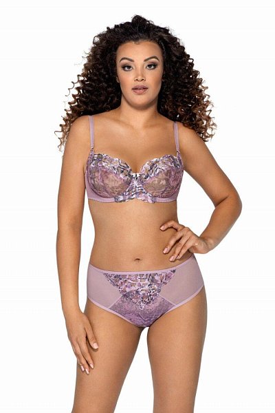 Бюстгальтер выполнен на косточках, чашки мягкие, с боковой коррекцией груди, шитые из сетки с цветочным принтом, верхняя часть чашки из сетки с принтом и вышивкой с люрексом, спинка из сетки, бретельки не отстёгиваются, регулируются по длине. На спине застёжка на удлинитель, количество крючков в ряду застёжки увеличивается пропорционально размеру бюстгальтера, фурнитура металлическая. У бюстгальтеров/купальных лифов AVA довольно тугой пояс, который адаптируется под тело после нескольких дней носки или одной-двух стирок. Рекомендуем использовать удлинитель пояса бюстгальтера на первое время либо выбирать следующий за «своим» размер, с поясом длиннее.