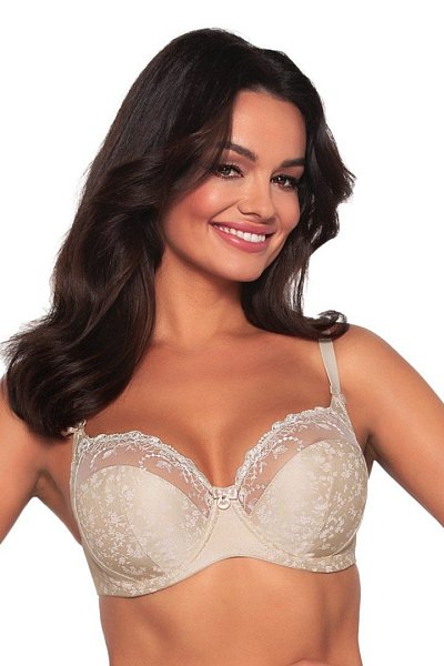 Бюстгальтер с мягкими чашечками на косточках, с боковым подкроем. Чашки шитые из эластичной ткани с цветочным принтом и сетки с вышивкой. Пояс из эластичного сетчатого полотна. Бретельки регулируются по длине, не отстёгиваются. На спине застёжка на удлинитель, количество крючков в ряду застёжки увеличивается пропорционально размеру бюстгальтера, фурнитура металлическая цвета меди. Проверенная конструкция, классический дизайн и нежные цвета — идеальное трио, на которое можно положиться в любой ситуации. Мягкие чашечки бюстгальтера с плотным принтом в виде девичьих цветочков выполнены из эластичной ткани, дополненной в верхней части ажурной вышивкой, которая красиво подчеркивает женственные формы и кокетливо обнажает соблазнительный овал бюста. У бюстгальтеров/купальных лифов AVA довольно тугой пояс, который адаптируется под тело после нескольких дней носки или одной-двух стирок. Рекомендуем использовать удлинитель пояса бюстгальтера на первое время либо выбирать следующий за «своим» размер, с поясом длиннее.