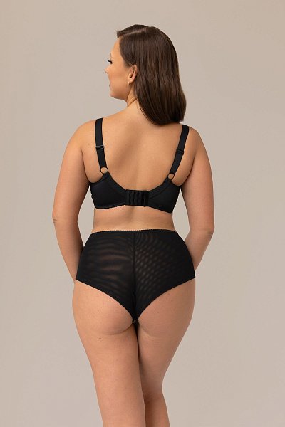 Бюстгальтер A-222 M выполнен на косточках, с боковыми поддержками для предотвращения скатывания пояса, чашки мягкие шитые из гипюра с принтом в виде лимончиков, с боковым подкроем, с Т-образным швом, продублированы черной стабилизирующей сеткой. Спинка из плотной стабилизирующей сетки. Бретельки не съемные, регулируются по длине, на спине застёжка - удлинитель на крючках, фурнитура металлическая крашеная.