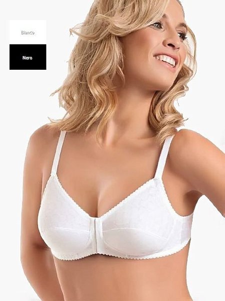 Бюстгальтер с мягкой чашкой без косточек, с высоким центром, застежка спереди на 4 крючках. Полностью выполненные из хлопка, чашки талии являются двойными, а бретели регулируются.