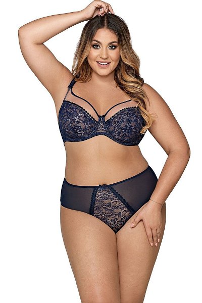 Темно-синий бюстгальтер на косточках с боковыми поддержками